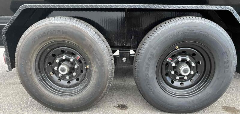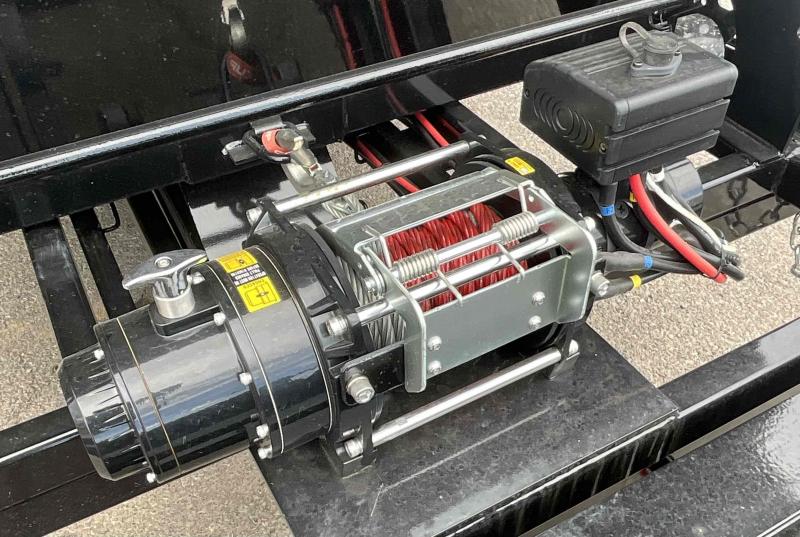 ROLLSTER CHASSIS ONLY, Primer + Black Powder Coating, BP 2 5/16" Adjustable (14k lb) Coupler, Tandem 7k Axles, Electric Brakes, Spring Loaded Drop Leg Jack (10K lbs), 6 Leaf Slipper Spring Suspension, 4-16 Black Mod Wheels, 4-235/80R16 Radial Tires (3520 lb), Electric Breakaway Kit w/Charger, Scissor Lift, 17.5k Winch, 45 deg Dump Pitch, 12VDC Hydraulic Pump, 5x12 Hyd. Cylinder w/Scissor Lift, 6" Channel Main Frame & Tongue, DOT Reflective Tape, 1/8 Treadplate Steel Fenders, Lockable Toolbox (Houses Battery and Pump)