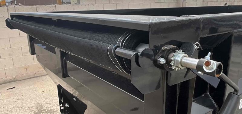 Black Powder Coated, 10ga. Steel Bed and Sides, 83" wide Bed with 48" High Sides, Mounted 84"x20' HD UV resistant Tarp, (4) D Rings welded inside the Box, Barn Door Gates, Roller Assembly, Bin Capacity 13.26 cubic yards